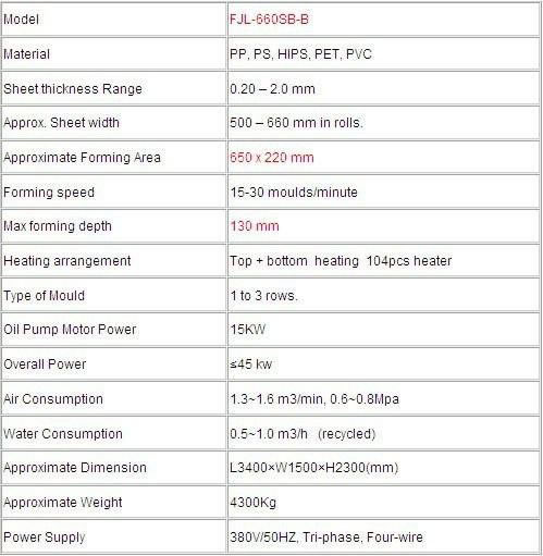 Parameters of Automatic Plastic Cup Thermoforming Machine